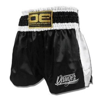 Danger Eco Muay Thai Shorts - Satin - Schwarz/Weiß