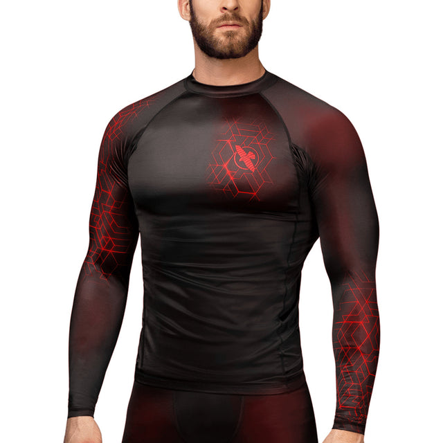 Hayabusa Geo Langarm-Rashguard - Schwarz, Rot